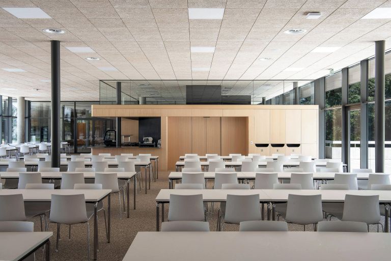Compact et rationnel, nécessitant très peu de mouvement de terre, le projet offre pourtant une grande polyvalence de fonctionnement. L'aula, la mensa et les salles de sport sont organisés de manière à permettre un accès à la fois depuis les circulations internes du collège ou directement depuis l'extérieur. Le dispositif permet des combinaisons d'utilisations simultanées entre les entités.