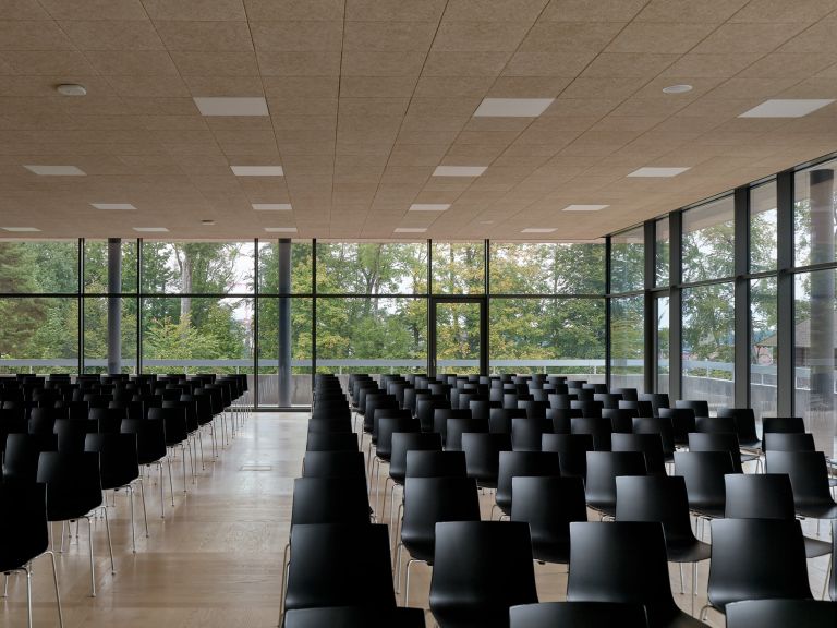 Les nouveaux volumes hébergent des salles de classe ordinaires et un lieu de rencontre ouvert sur le parc et le balcon, ainsi que la bibliothèque vitrée sur la forêt. La Villa Gallia reçoit les salles d'arts visuels et les salles informatiques.